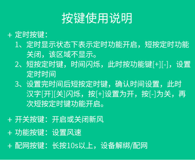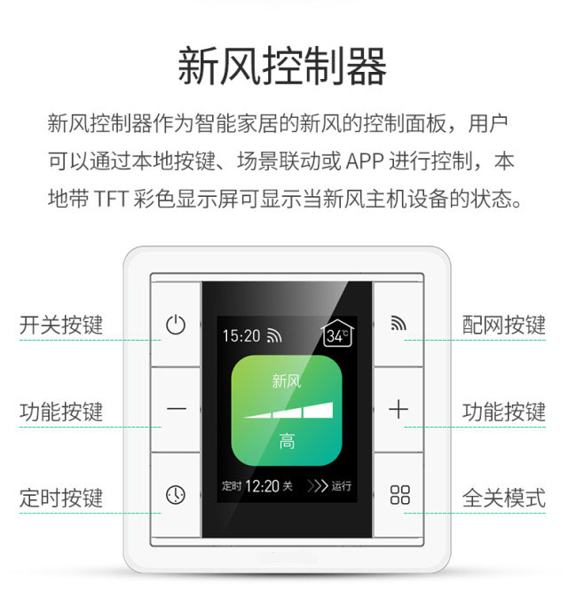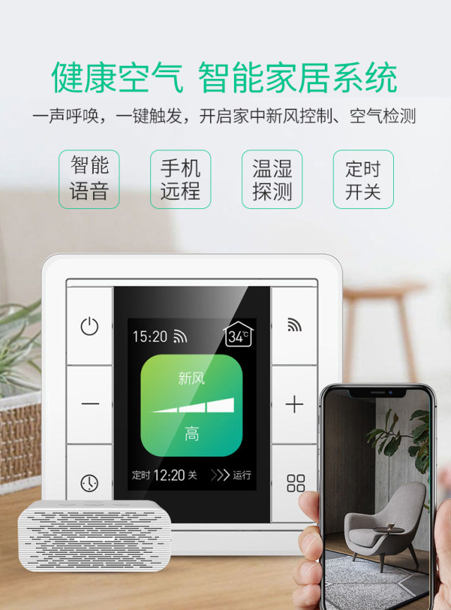 通过产品本地按键或无线调整新风系统开关,调整风力大小。